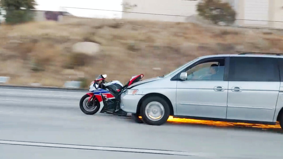 Automobilist rijdt gewoon door nadat hij een motorrijder ramt