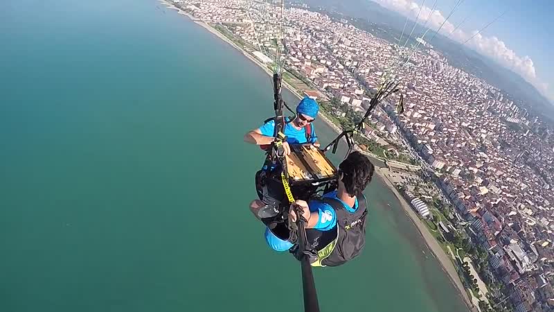 Een potje backgammon spelen tijdens een paraglidervlucht