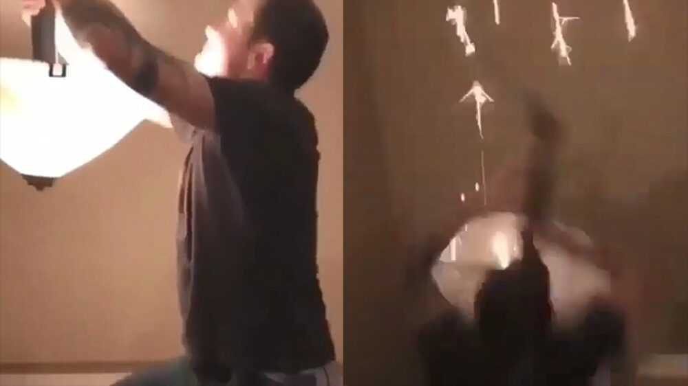 Dronken aan een lamp hangen is misschien toch geen goed idee Fails