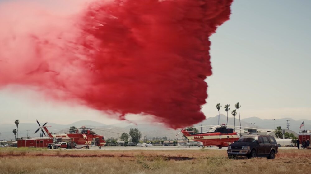 Blusvliegtuigen blussen bosbranden met bluswater dat eventueel brandvertragende chemicaliën bevat. De nieuwere brandvertragers, zoals Firetrol en Phoscheck, zijn roodgekleurd middels toegevoegde ferro-oxide om het gebied te markeren waar het is ingezet.