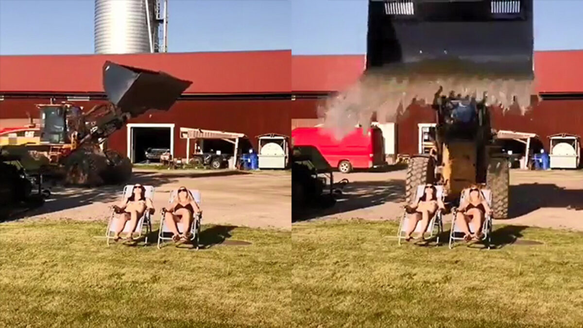 Zonnende boerendochters worden op een koude douche getrakteerd
