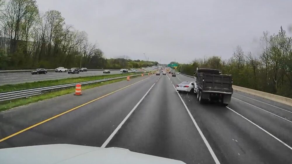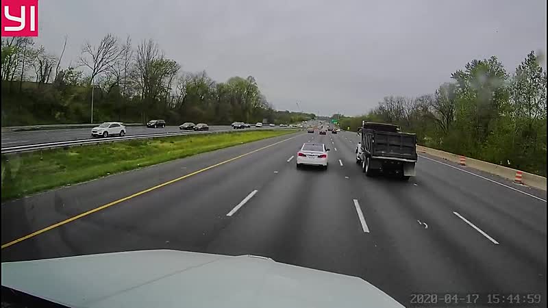 Er lijkt niets aan het handje te zijn op een vierbaansweg in Philadelphia als een automobilist plotseling besluit om zijn stuur naar rechts te gooien. Waarvan zou hij geschrokken zijn?