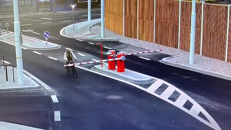 Slagboom lijkt voor blinde fietser ineens uit het niets te verschijnen Fails