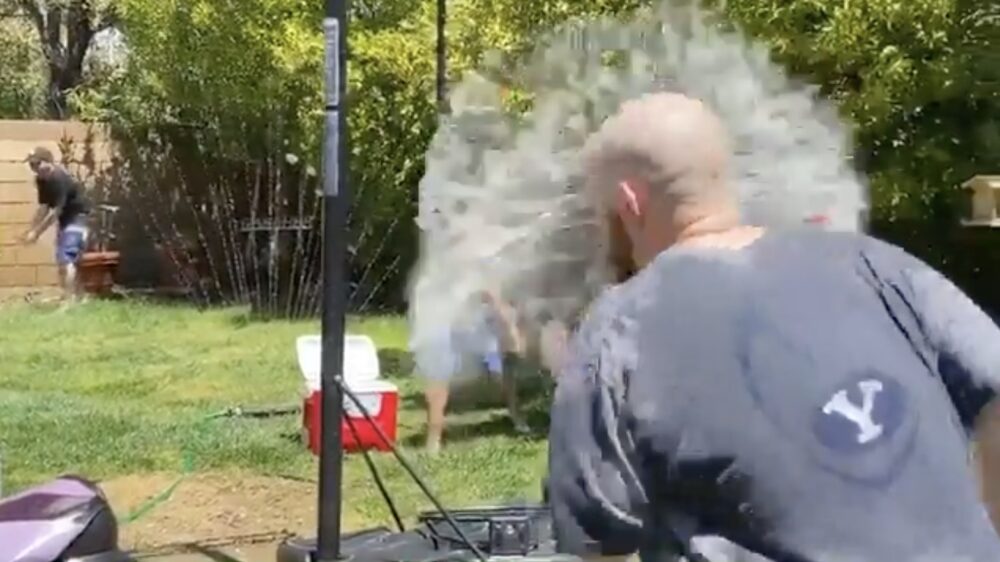 Papa krijgt een waterballon vol op z'n bakkes gegooid Fun
