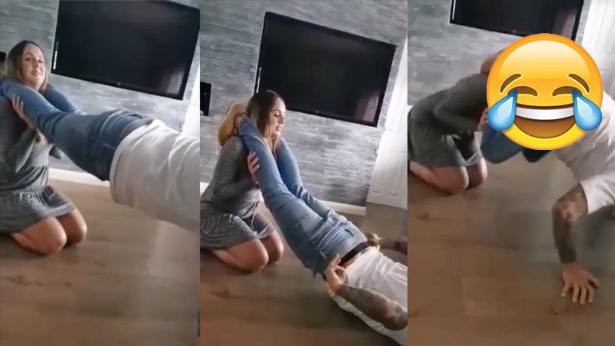 "Schatje, als jij nou even mijn benen in de lucht houdt dan kan ik die pushup-challenge perfect uitvoeren!". Dat ze deze niet zag aankomen zegt ook wel wat...