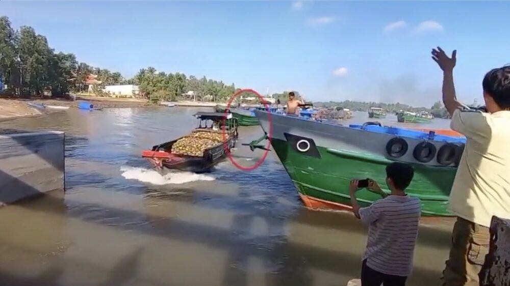 Geen idee of je in Vietnam op het water ook voorrang hebt als je van rechts komt, maar het anker vond blijkbaar van niet.