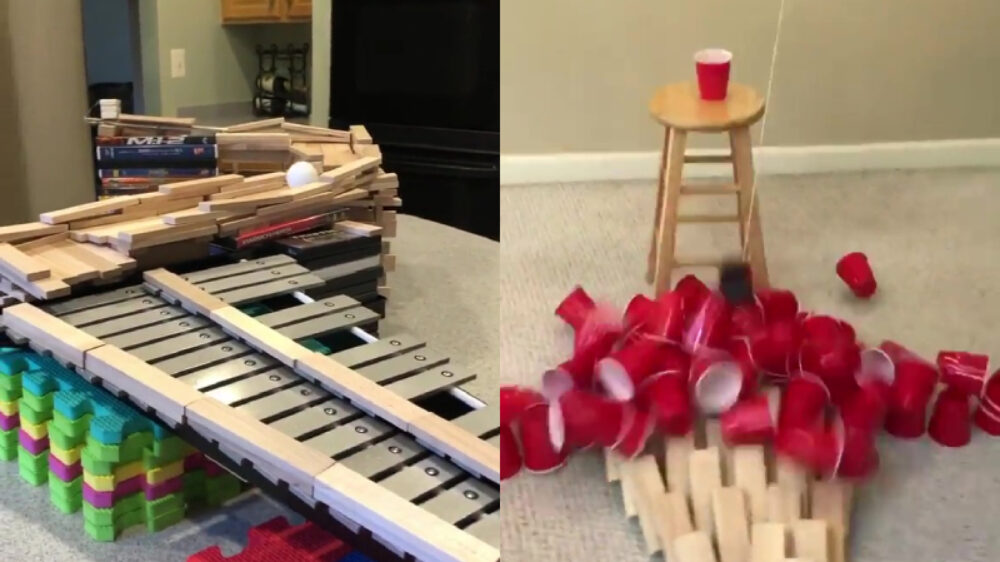 Beerpong is te gek om te spelen, maar als toeschouwer toch een beetje saai. Er moeten toch spannende manieren zijn om die pingpongbal in dat rode bekertje te krijgen? Gelukkig deed deze creatieveling een poging, en alhoewel er waarschijnlijk stukken minder gezopen wordt is het zeer zeker vermakelijk om naar te kijken.