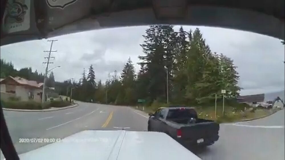 Pickupbestuurder krijgt te maken met moedertje karma na een belachelijke inhaalactie