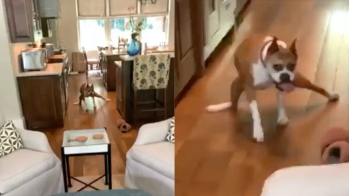 Brutus heeft wat ongemak nu de houtenvloer in de was is gezet Fails
