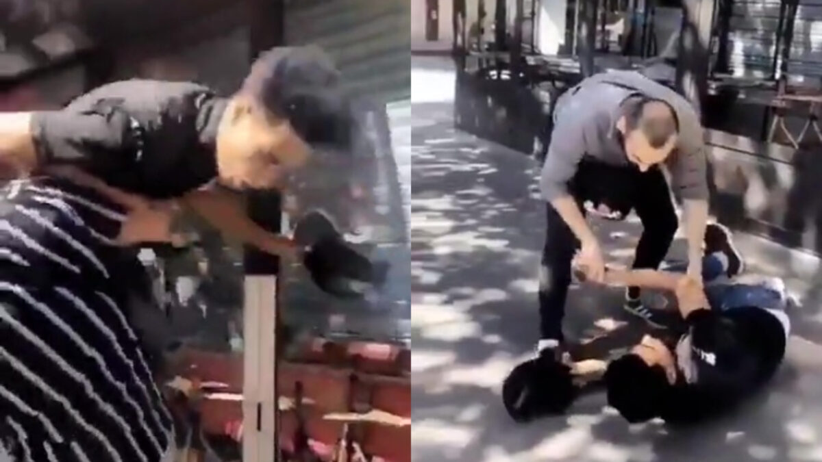 Parijse straatrover wordt door omstander tegen de grond gekwakt