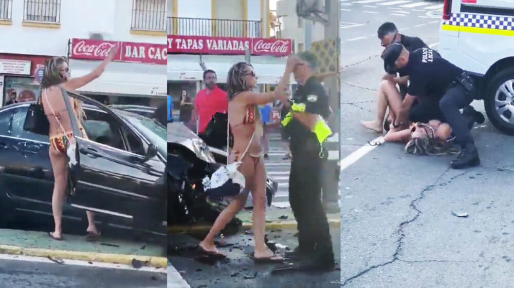 Spaanse jongedame crasht haar auto en maakt er een leuk feestje van