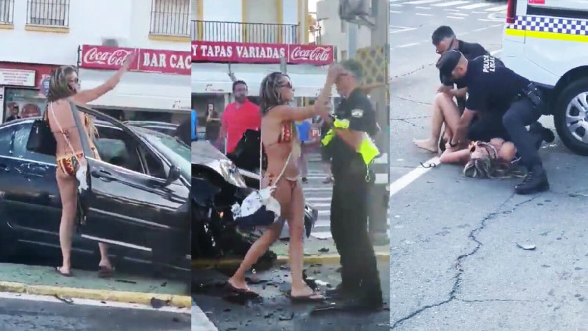 Spaanse jongedame crasht haar auto en maakt er een leuk feestje van