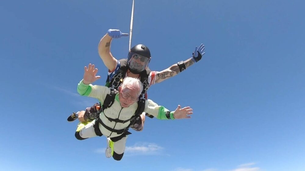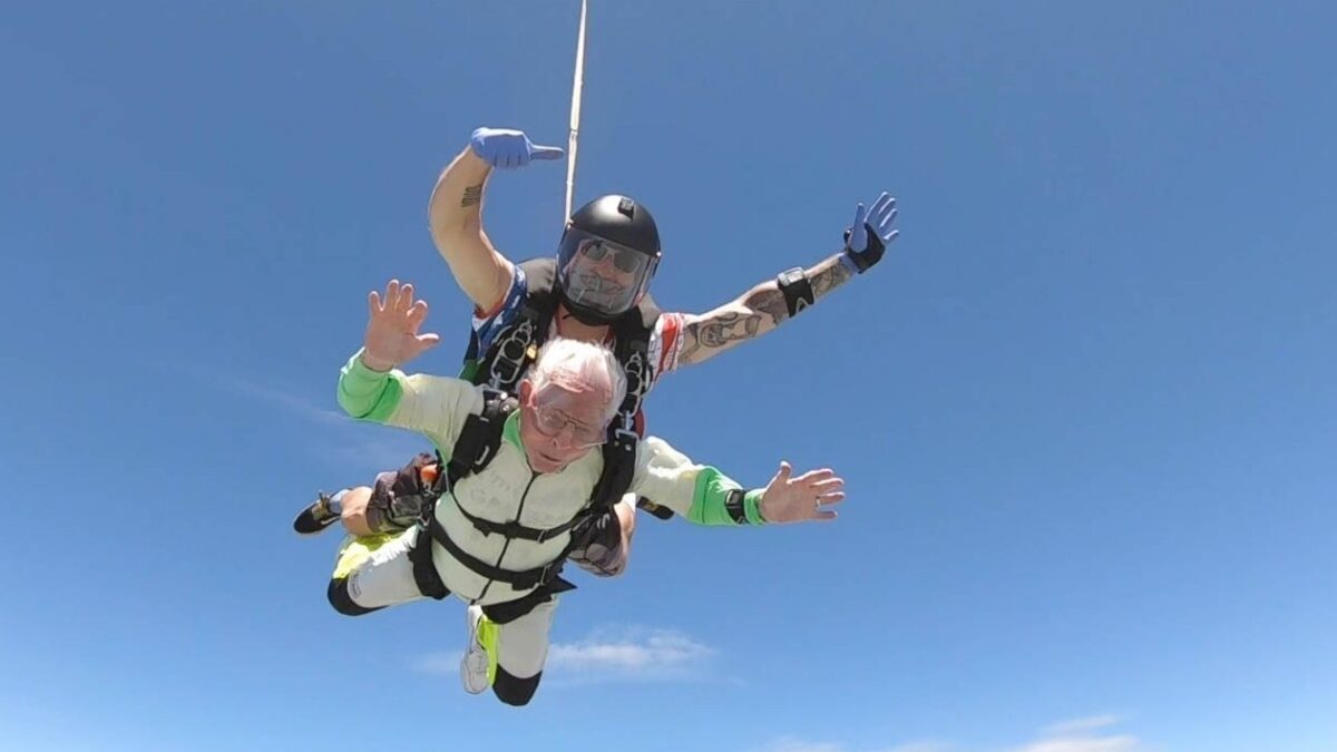 103-jarige eindbaas Al Blaschke breekt wereldrecord voor oudste tandemsprong