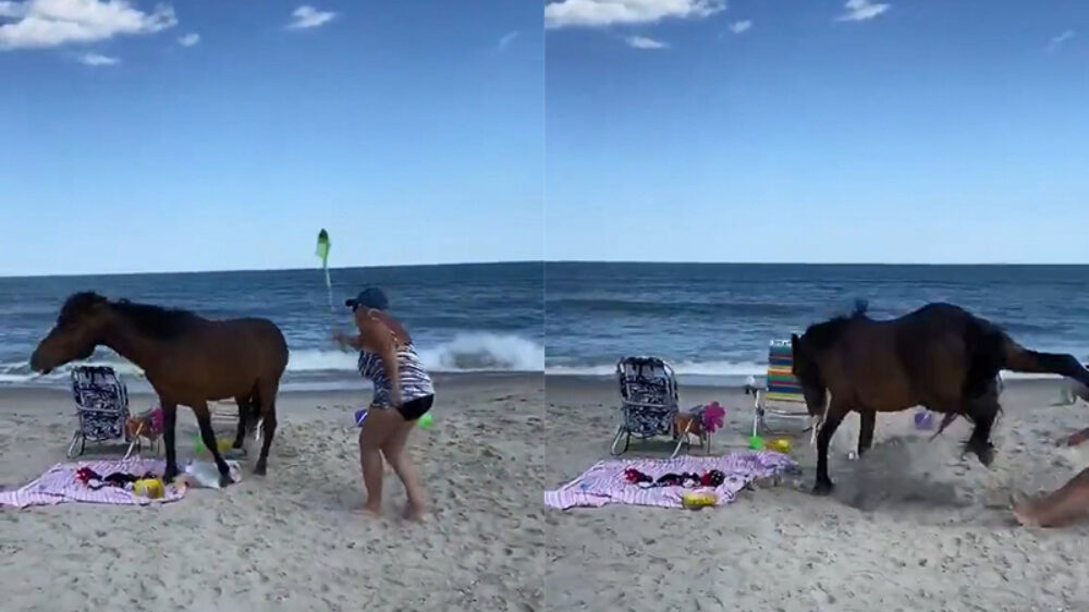 Strandganger komt erachter dat je nooit achter een wild paard moet staan