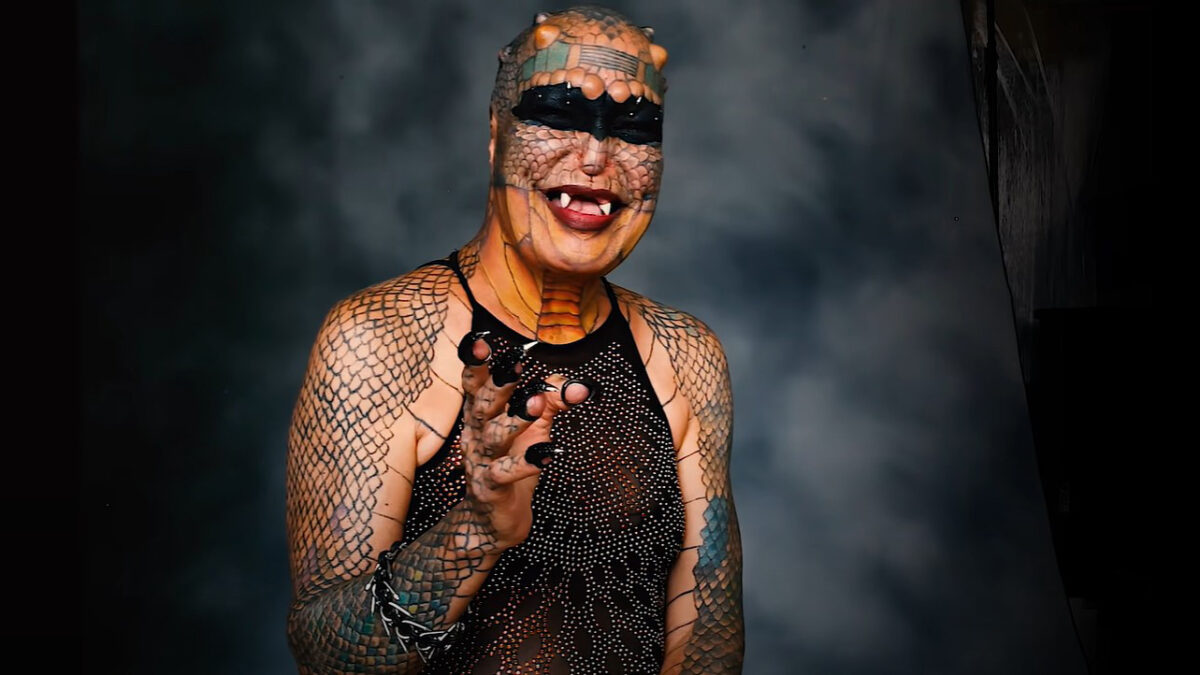Ex-bankier, ex-man en ex-transgender Eva Tiamat Medusa heeft als missie om te transformeren in een geslachtsloze draak en zoals je kunt zien is hij/zij het aardig op weg.