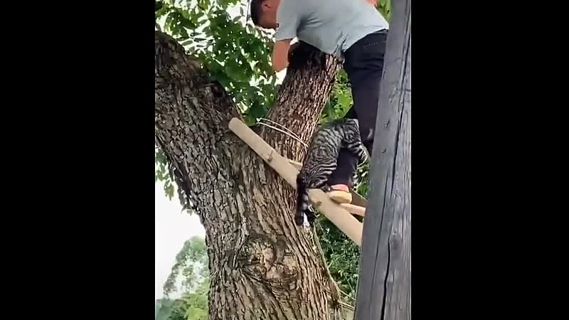 Kat heeft direct spijt van zijn boomklim-avonturen