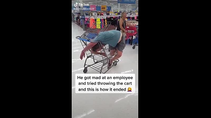 Waarom deze man dusdanig kwaad was dat hij met een winkelwagentje wilde gooien weten we niet, maar uiteindelijk kreeg moedertje Karma hem toch nog te pakken. Of hij inmiddels bevrijd is blijft tot nu toe onbekend.