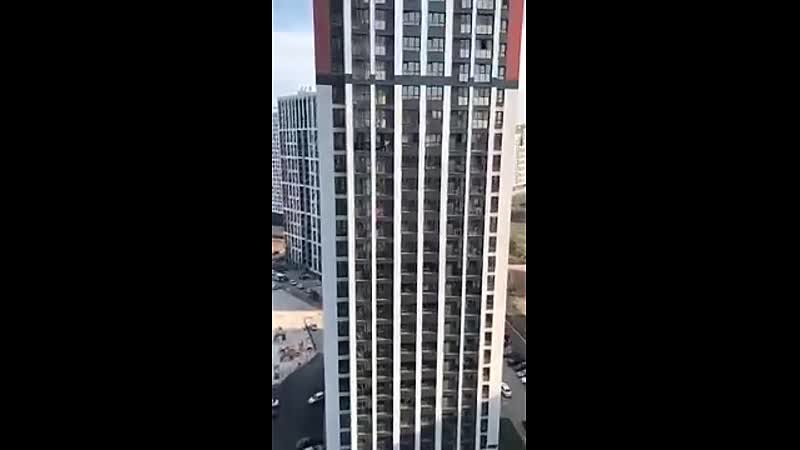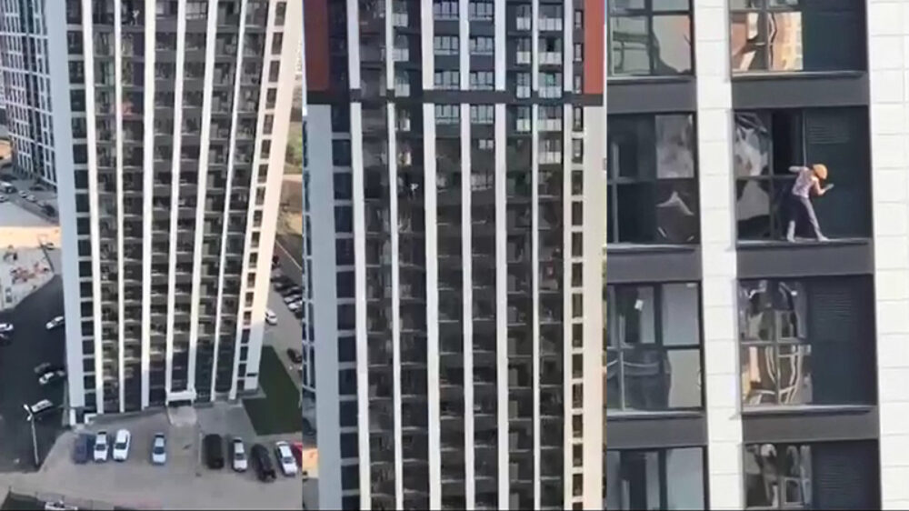 Russische poetsvrouw heeft eierstokken van staal en wast ramen op de 18e verdieping