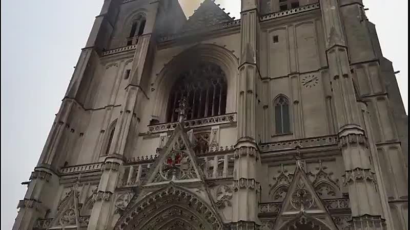 In de kathedraal van de Franse stad Nantes is vanmorgen vroeg brand uitgebroken. Op beelden zijn vlammen en rook te zien in het 15e-eeuwse gothische bouwwerk. Zo'n zestig brandweerlieden zijn ingezet om het vuur te bestrijden.