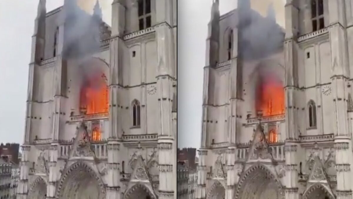 Het is weer raak in Frankrijk, ditmaal in Nantes, waar een historische kathedraal in brand staat.