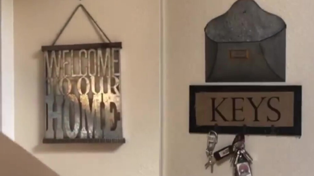 Deze knakker geeft even een rondleiding door zijn eigen huis dat inmiddels door meerdere van dit soort borden geteisterd wordt.