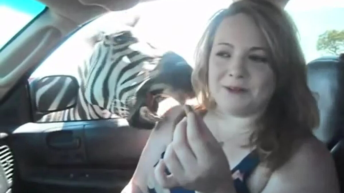 Onoplettende troela wordt pijnlijk gebeten door een zebra Fails
