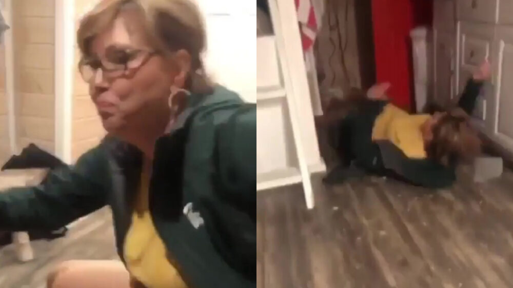 Moeder houdt haar drank niet binnen en glijdt uit over haar eigen lauwe plak Fails