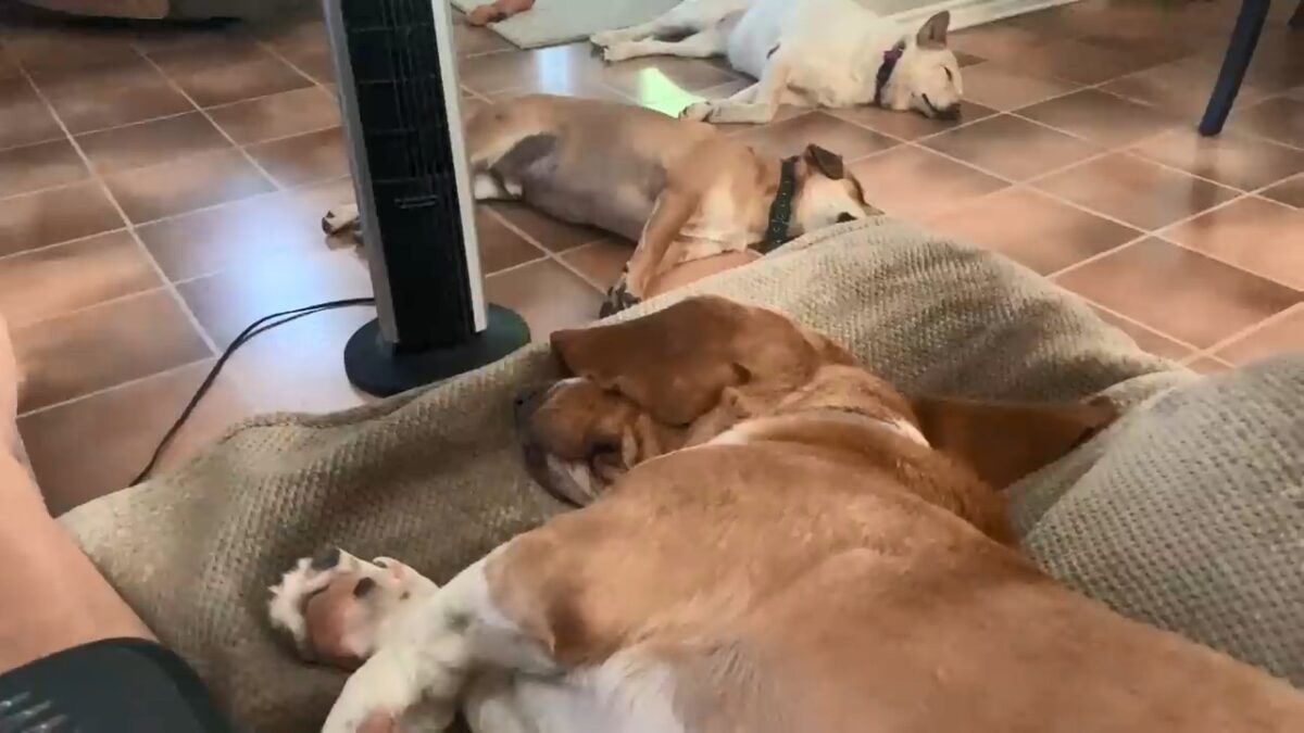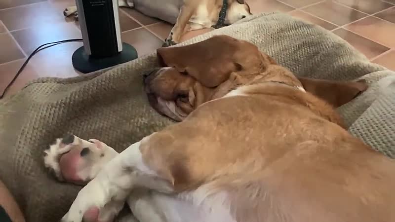 Luie honden worden tijdens hun middagslaapje gewekt door het E-woord