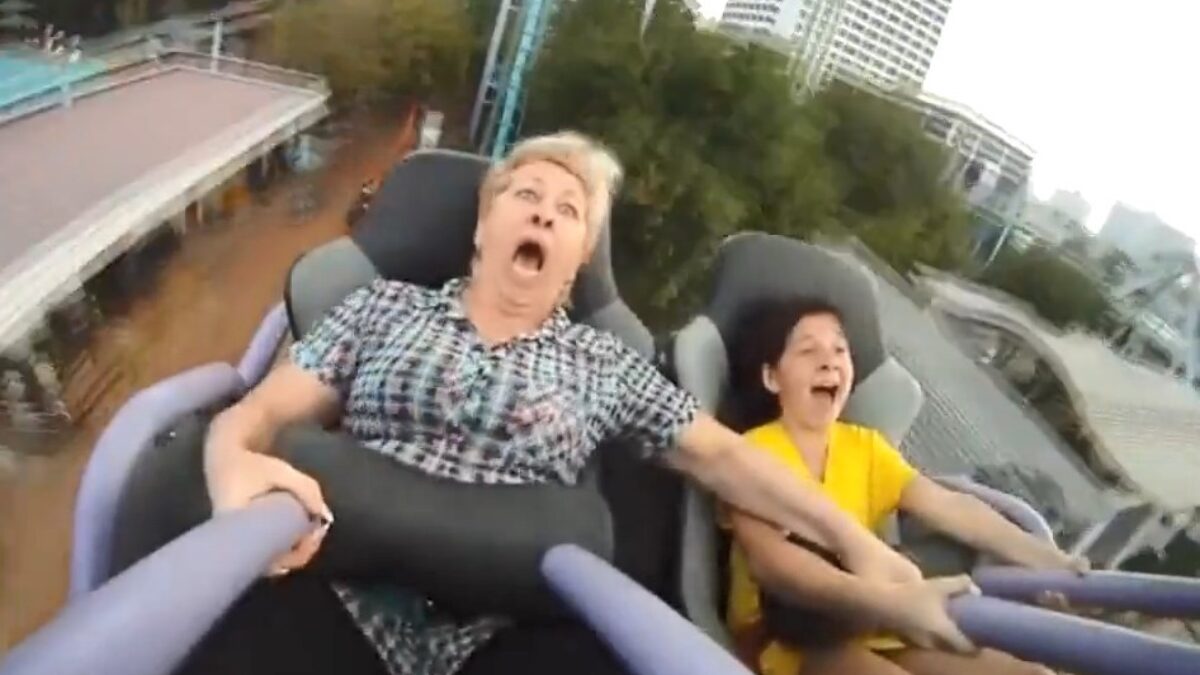 Moedertje krijgt een overdosis adrenaline tijdens een ritje in de achtbaan