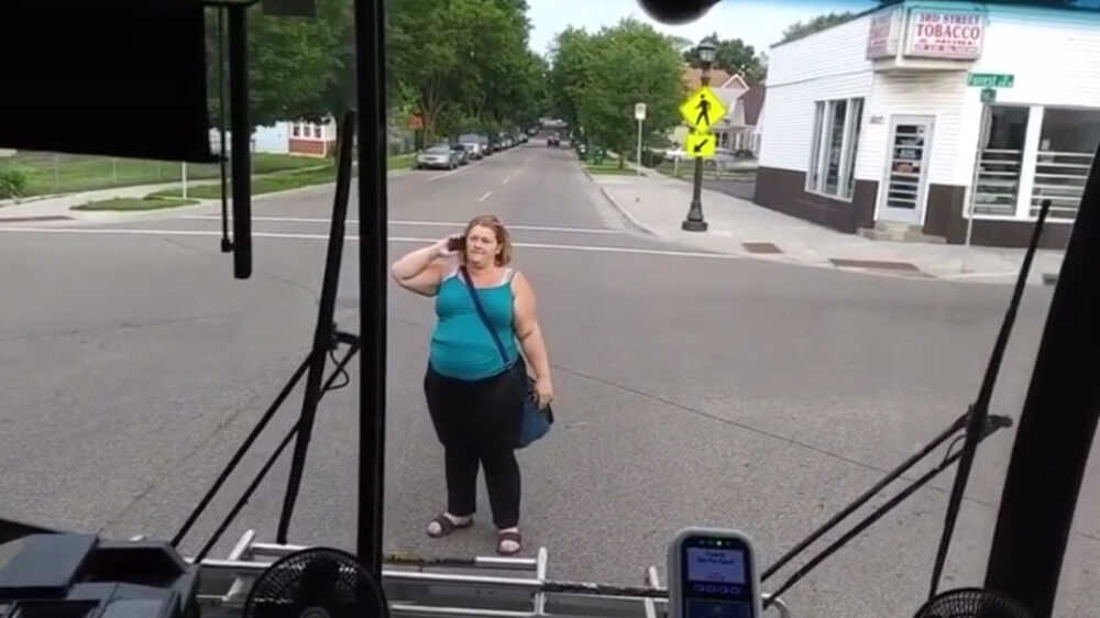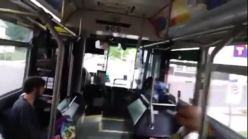 Waarom deze dame meent de bus te moeten blokkeren is niet helemaal duidelijk, maar na het rammen op de voorruit heeft ze al vrij snel spijt aangezien de chauffeur het hele voorval heeft vastgelegd.