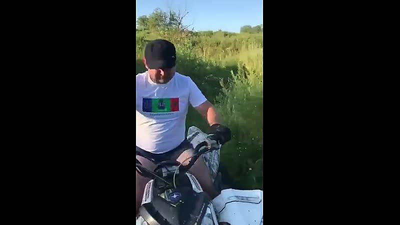 Opgefokte Rus op quadburn-out maakt dikke burn-out op een houten brug *plons* Fails
