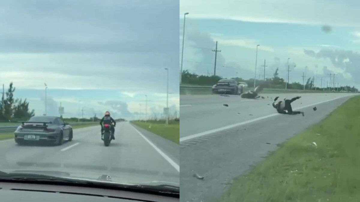 Motorrijder schrijft complete motor af na straatrace met Porsche