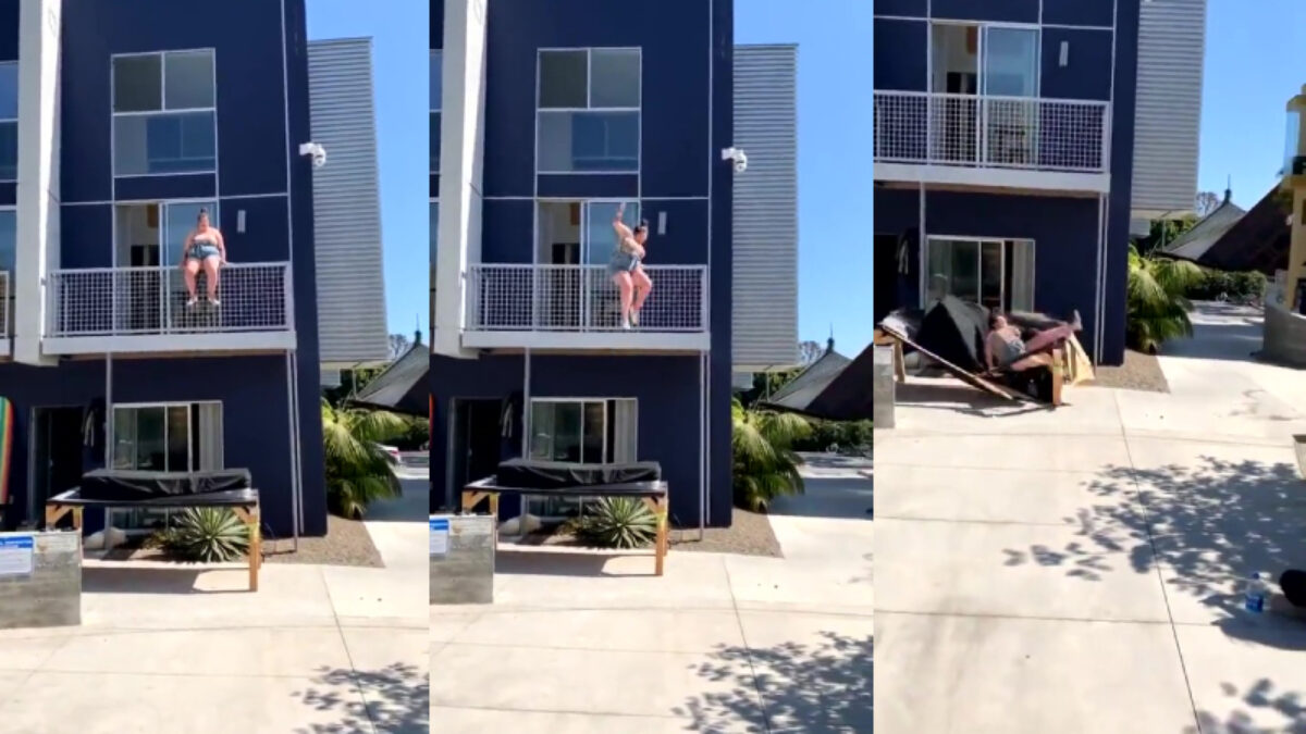 Soms heb je video's waarbij je denkt "Maar waarom dan!?". Onderstaande is een mooi voorbeeld. Aan het matras te zien was het de bedoeling dat mevrouw zachtjes zou landen, maar, alle fatshaming op een stokje, wat dacht je nou zelf?!