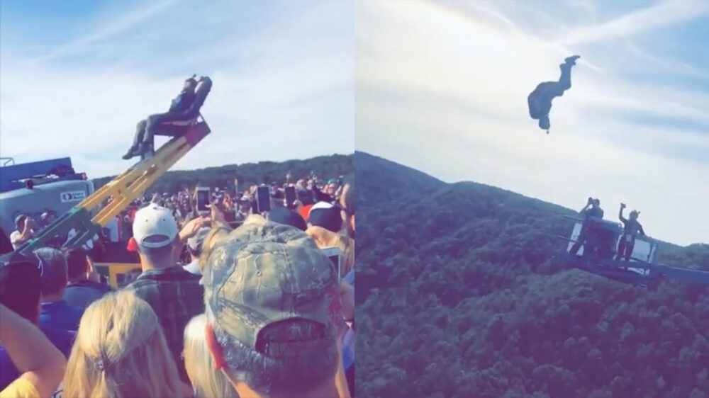 Basejumper wordt van brug gelanceerd voor die extra adrenalinekick