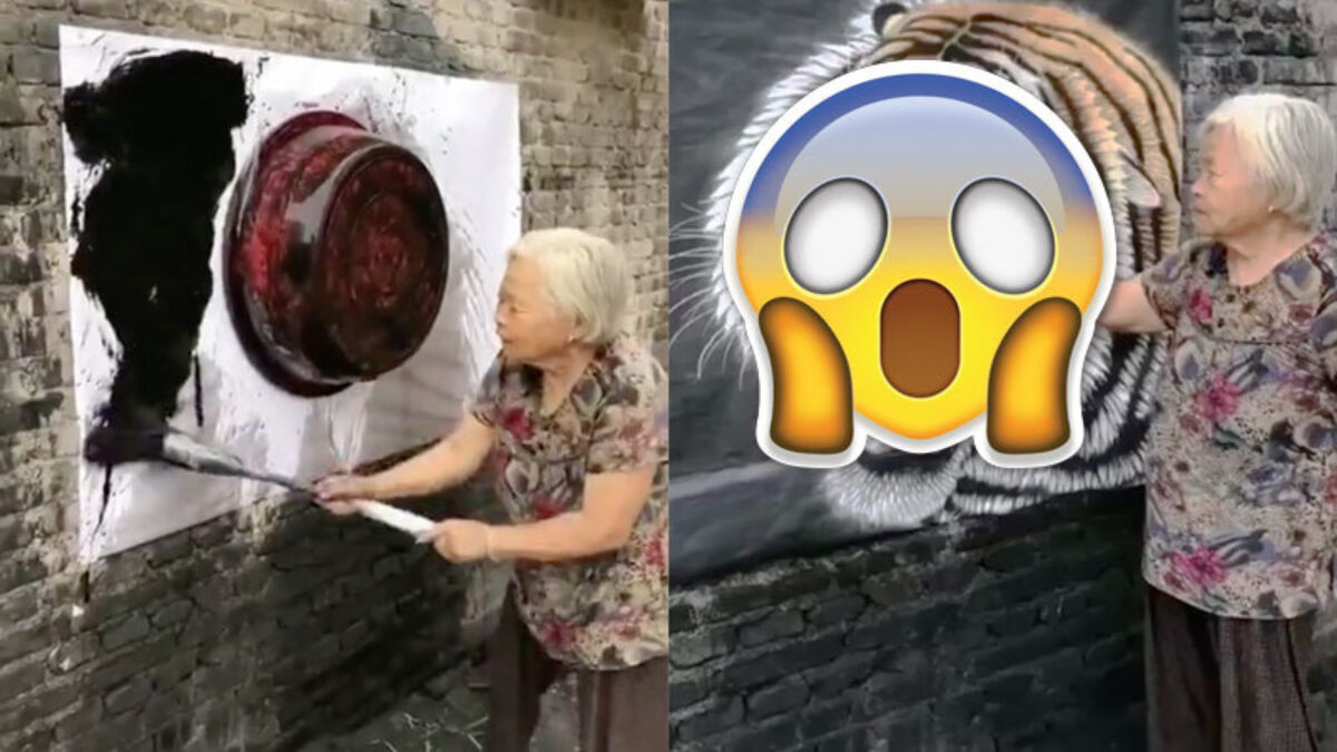 Een beetje verf tegen de muur kwakken kan iedereen wel, maar deze oma weet er daadwerkelijk nog een vet schilderij van te maken!