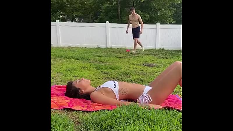 Terwijl zijn vriendin aan d'r kleurtje werkt, oefent deze amateurvoetballer zijn vrije trappen. Dat wordt waarschijnlijk een paar nachten op de bank slapen.