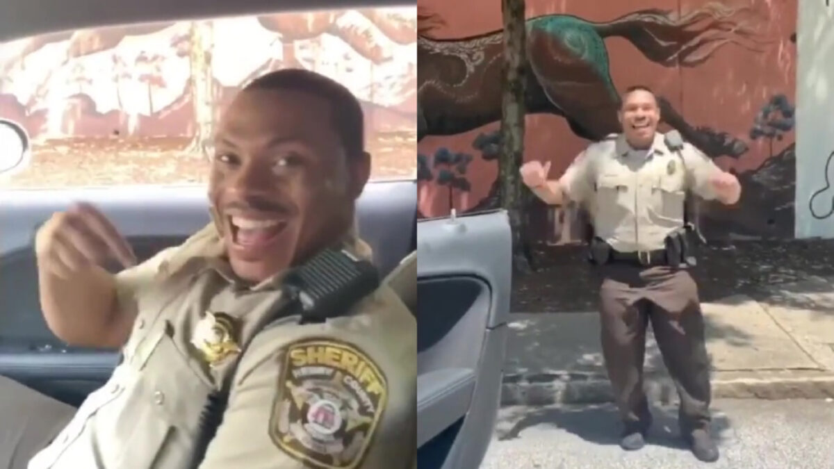 In een tijd waarin een heleboel politieagenten slecht in het nieuws komen is het ook wel eens lekker een agent te zien die je alleen maar op wil vrolijken. Samen met Instagrammer Mufasa zorgt deze diender wel voor een glimlach!