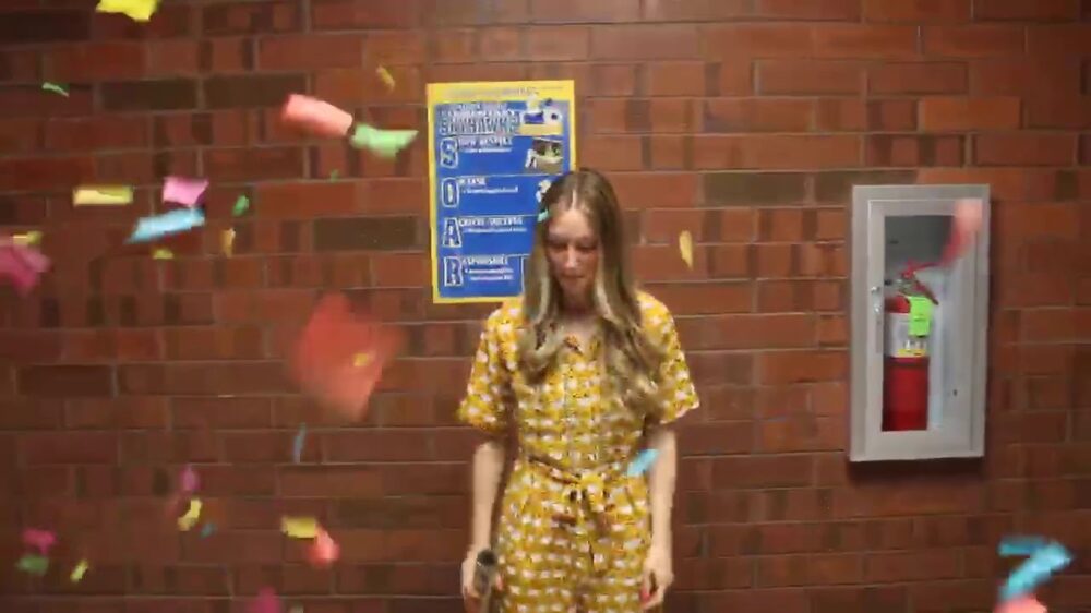 Dit confettikanon heeft blijkbaar iets teveel kracht