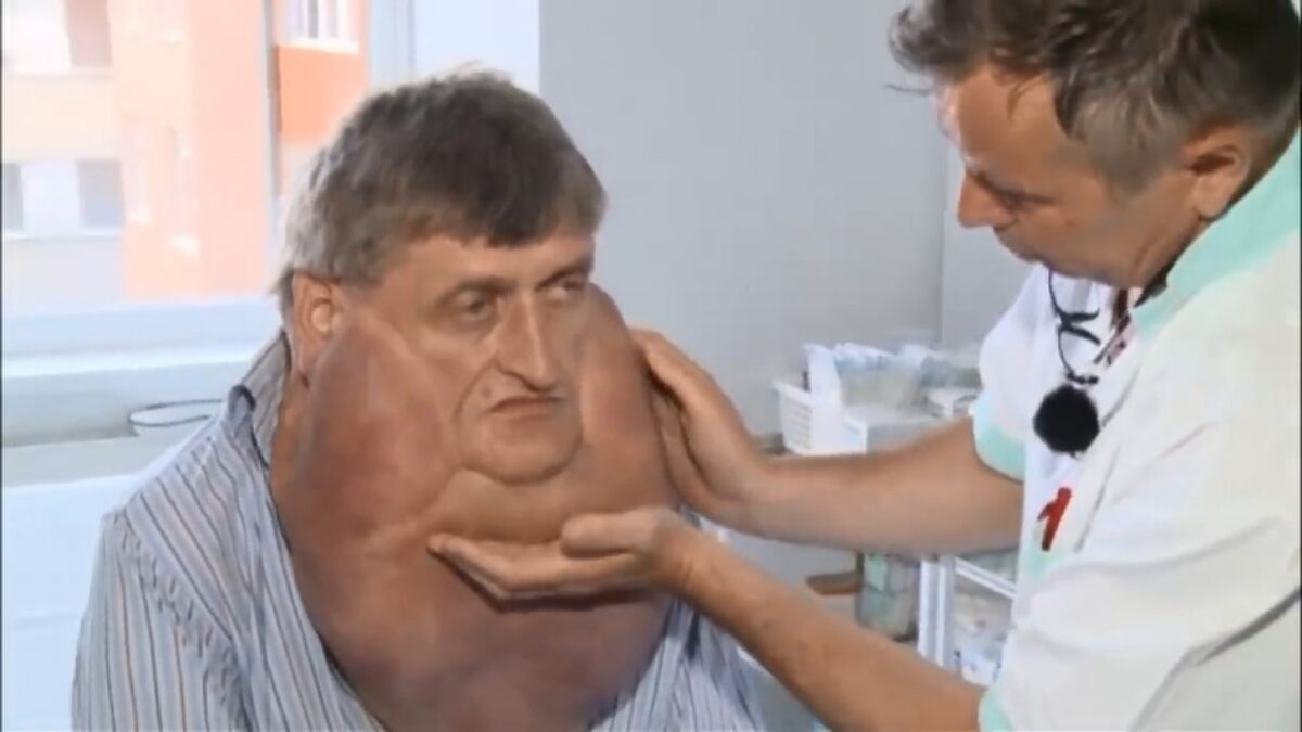 Slowaakse chirurgen verwijderen een gigantische tumor van zes kilogram waar Stefan Zoleik de afgelopen tien jaar mee rond sleepte.