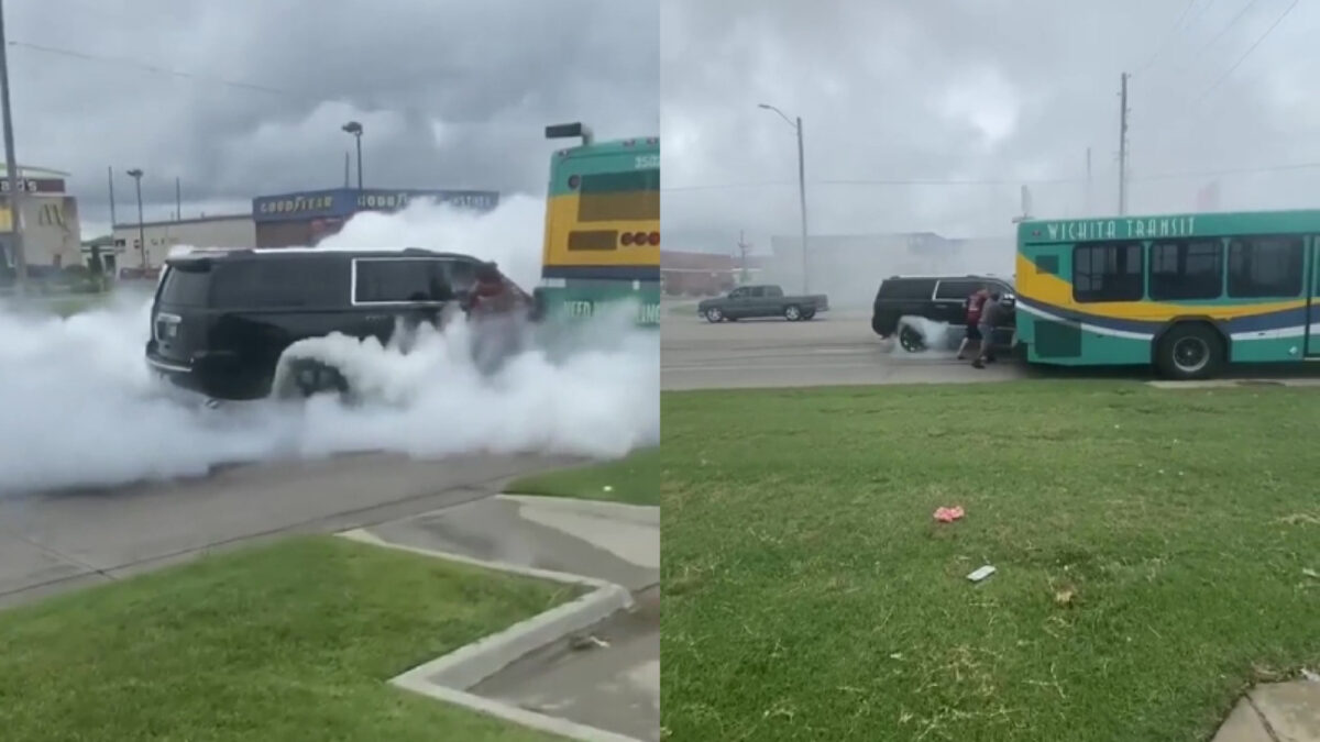 In eerste instantie zou je wellicht denken dat het gewoon iemand is die burnouts aan het doen is, maar niets is minder waar. In deze auto zat namelijk een man uit Kansas die een aanval zou hebben gekregen en daardoor buiten bewustzijn raakte.