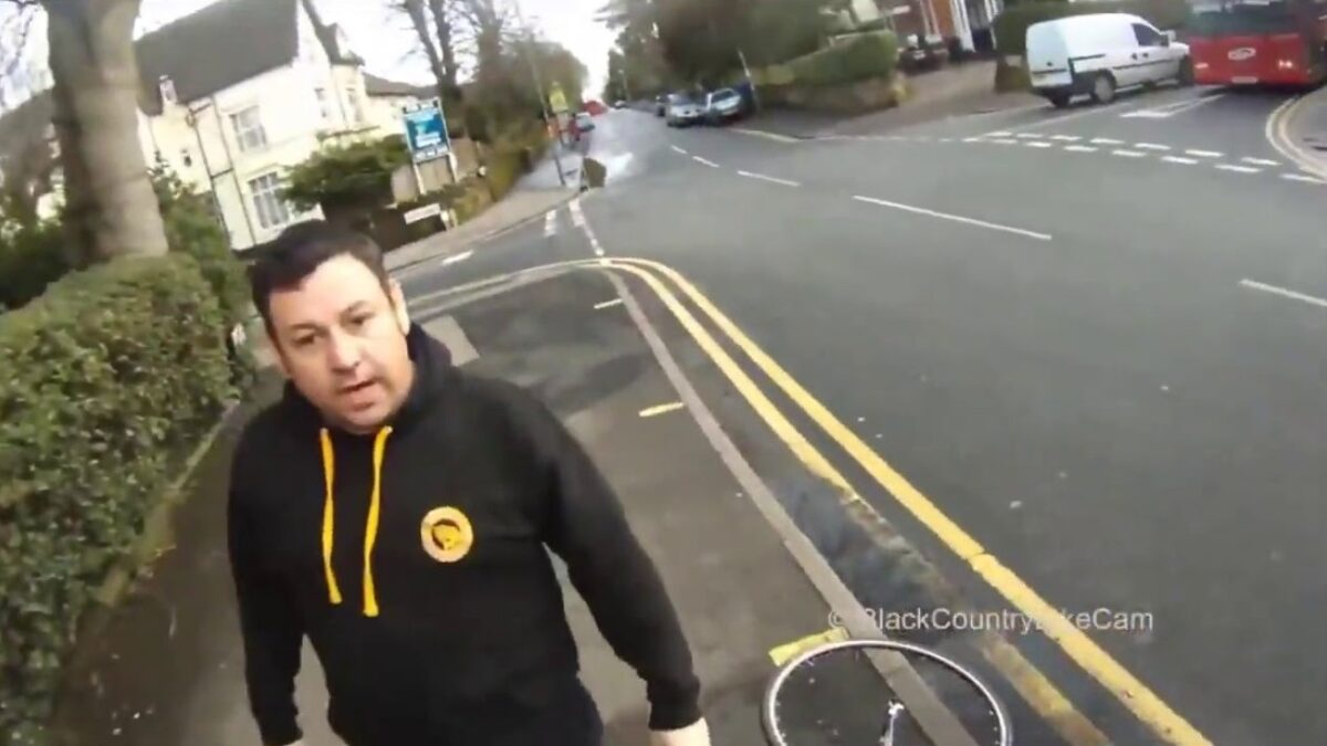 Fietser met blije toeter wordt van zijn tweewieler getrokken door pissige automobilist