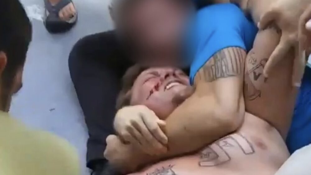 Medewerkers van een restaurant in Florida hebben een man naar de grond moeten halen die uit zijn stekker ging en een onschuldige vrouw aanviel, nadat hij allerlei idiote dingen riep.