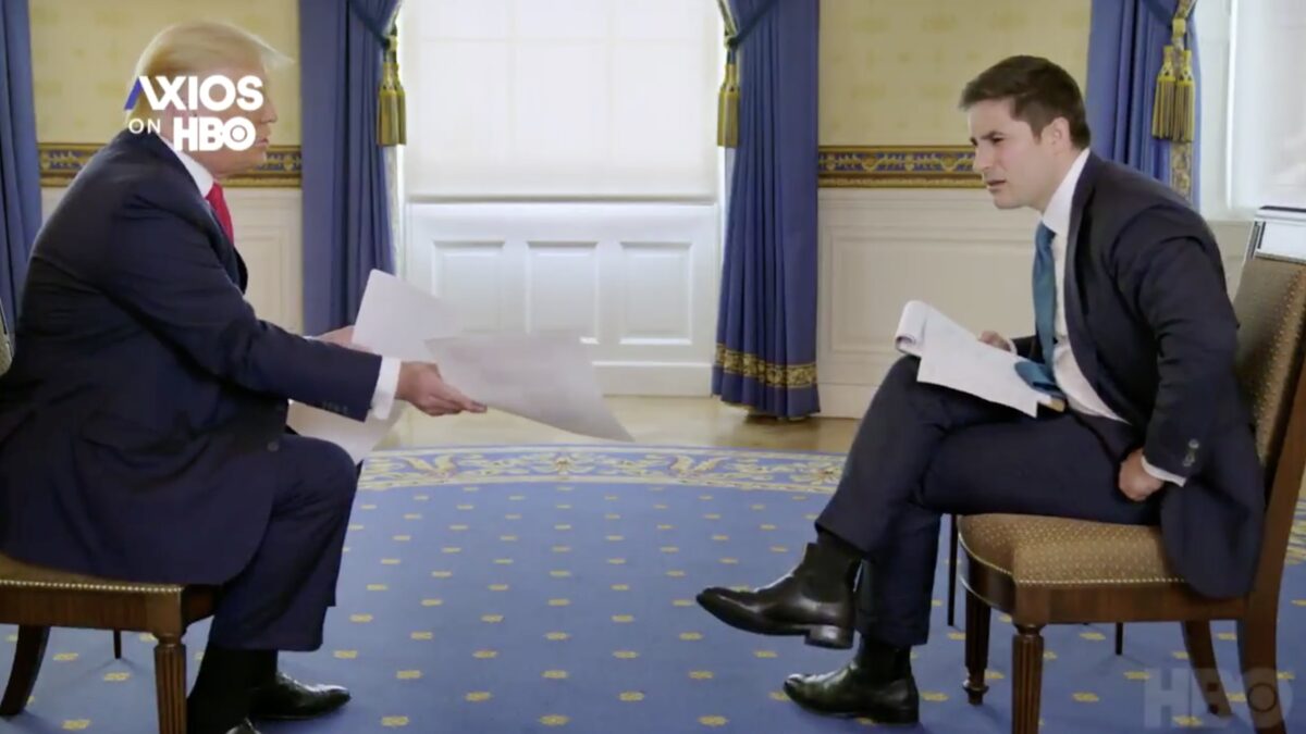 De Australische journalist Jonathan Swan confronteert Donald Trump met cijfer die, volgens hem althans, een stuk minder rooskleurig zijn dan hoe Trump ze uitlegt.