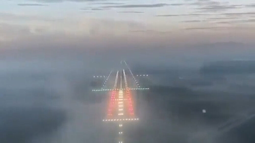 POV-beelden laten zien hoe piloten een vliegtuig in dikke mist weten te landen