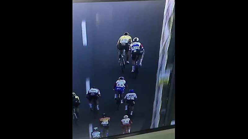 In de beelden die van bovenaf gemaakt zijn, zie je goed hoe Groenewegen van zijn lijn afwijkt en op het laatst nog even zijn elleboog uitsteekt, met alle gevolgen van dien 👇