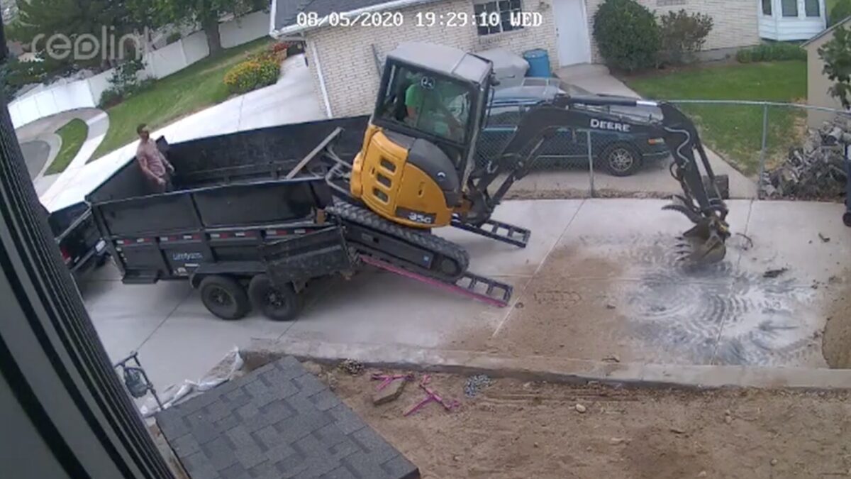 Vernuftige manier om graafmachine in te laden blijkt toch niet zo vernuftig Fails