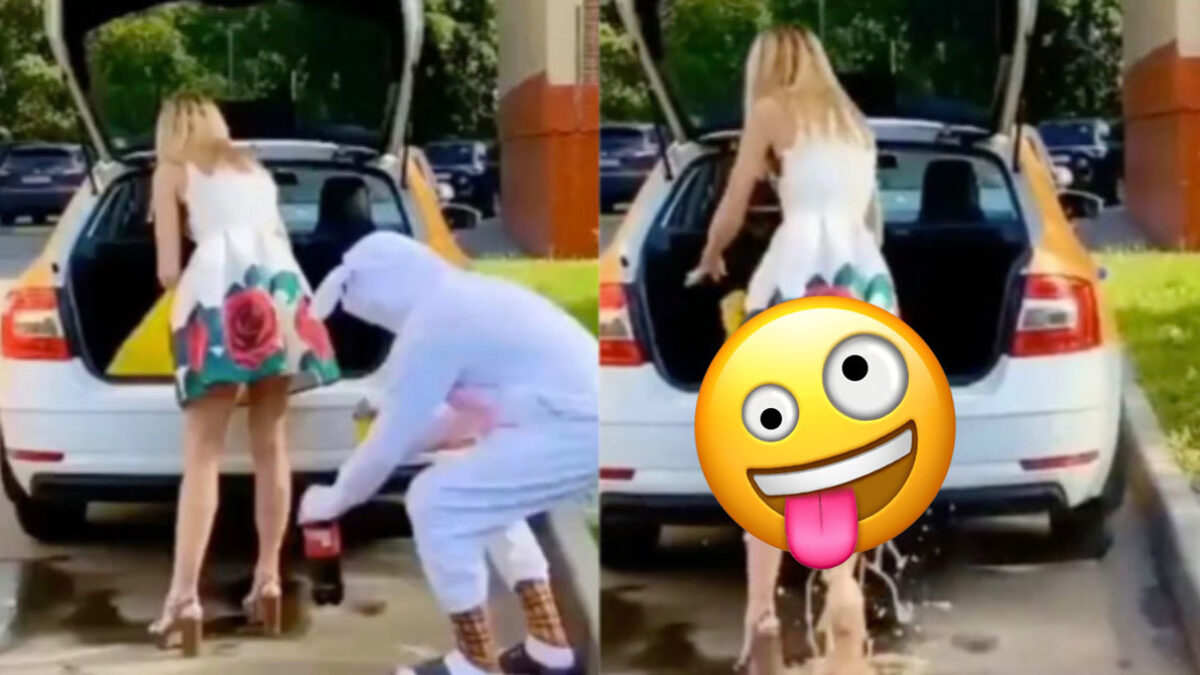 Zou zijn vriendin ook zo kunnen lachen om dit kinderachtige grapje? Fun