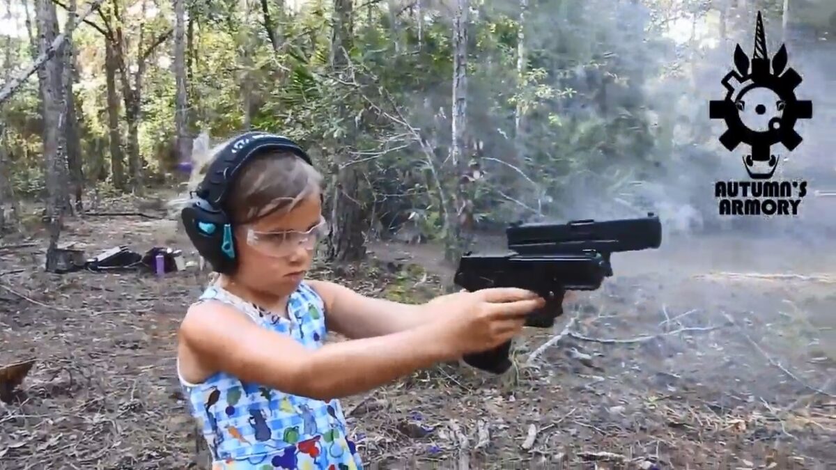 7-jarige Pistolen Paulientje showt even haar schietvaardigheid