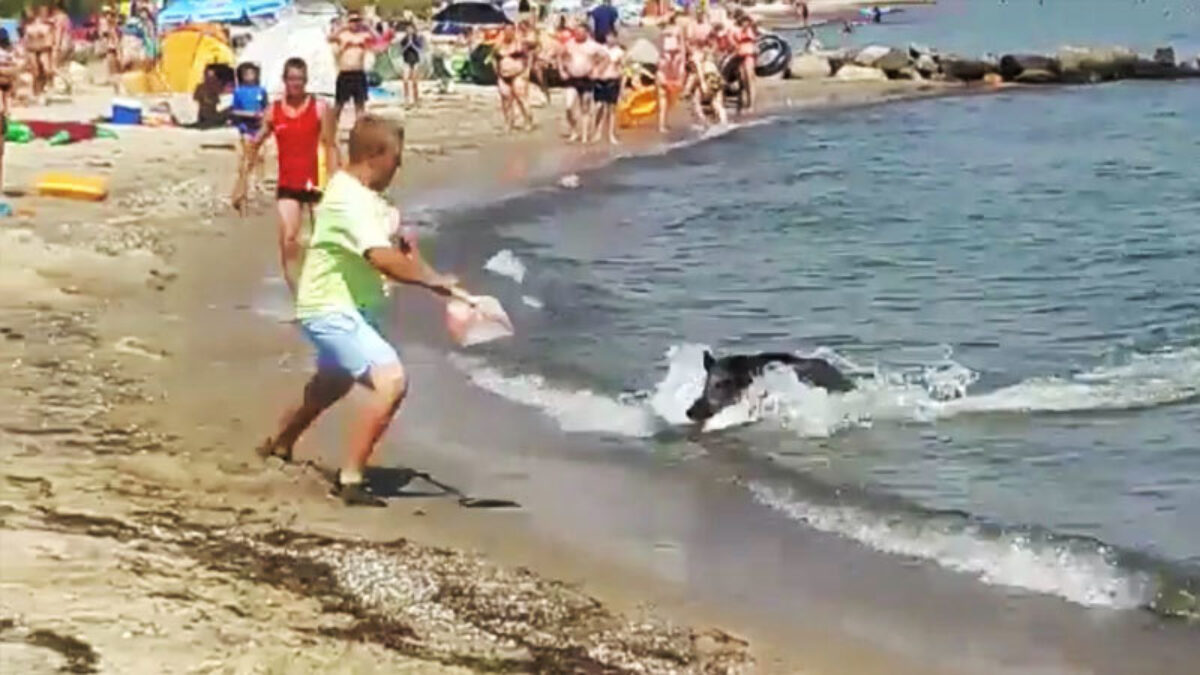 Zeg nou zelf, wat zou jij doen als je net de oceaan bent overgezwommen en je meteen een schep tegen je bakkes krijgt? Karma noemen ze dat!