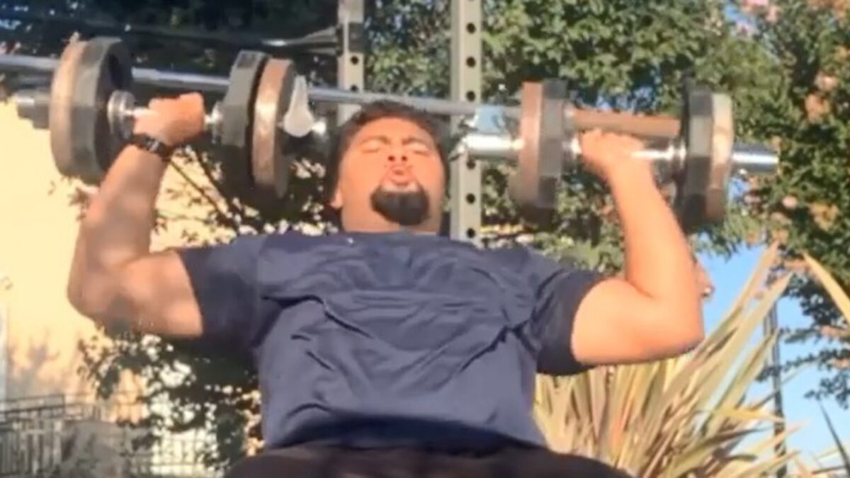 Gewichtheffer eindigt zijn sessie met koppijn Fails